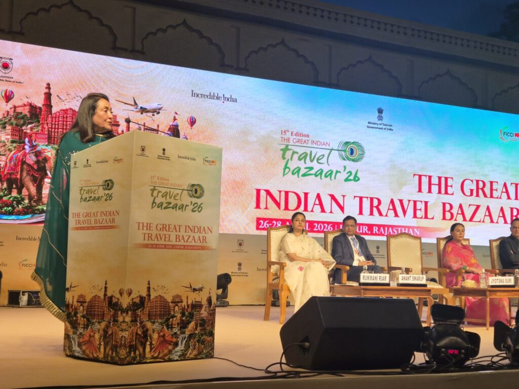 भारत के आतिथ्य क्षेत्र की एक प्रमुख हस्ती और FICCI की पर्यटन समिति की अध्यक्ष ज्योत्सना सूरी ने जयपुर में आयोजित ग्रेट इंडियन ट्रैवल बाज़ार (GITB) के 2026 संस्करण में प्रतिनिधियों को संबोधित करते हुए इसकी बढ़ती वैश्विक प्रतिष्ठा पर ज़ोर दिया।